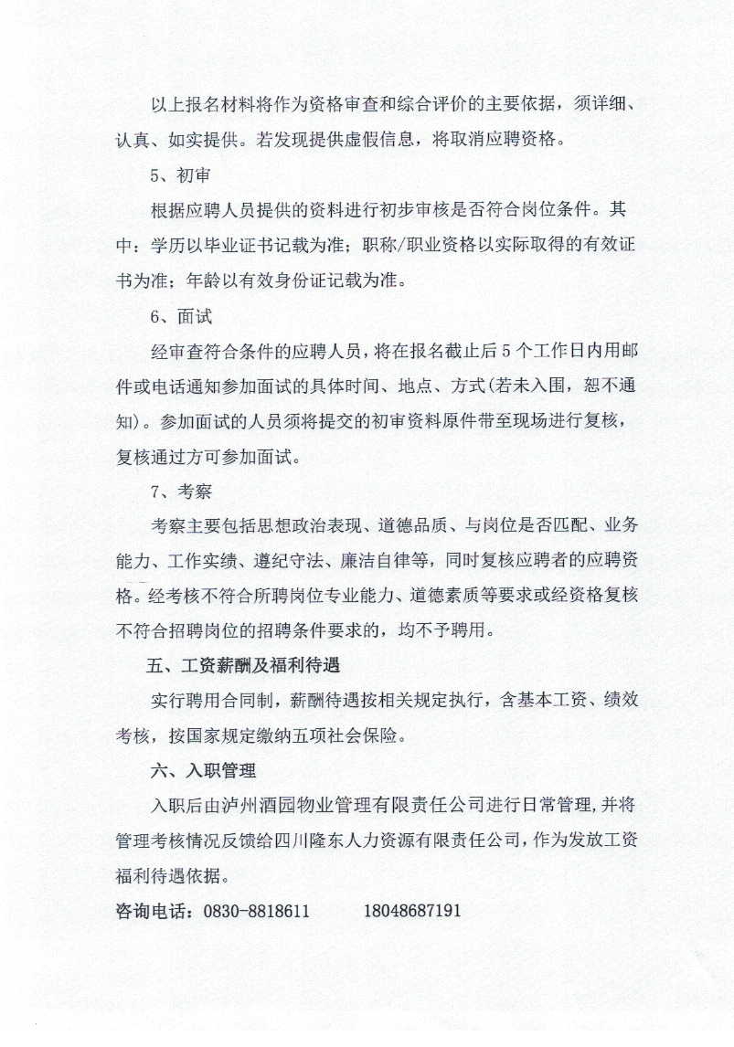 關(guān)于招聘派遣至瀘洲酒園物業(yè)管理有限責(zé)任公司勞務(wù)人員的公告