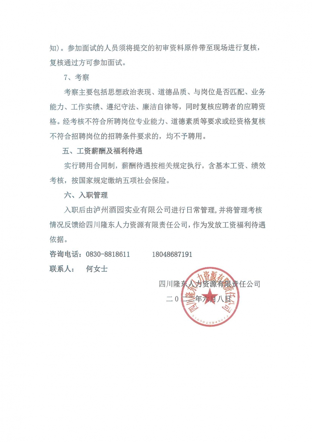 關于錄用派至瀘州酒業(yè)物業(yè)管理有限責任公司勞務工作人員的公示