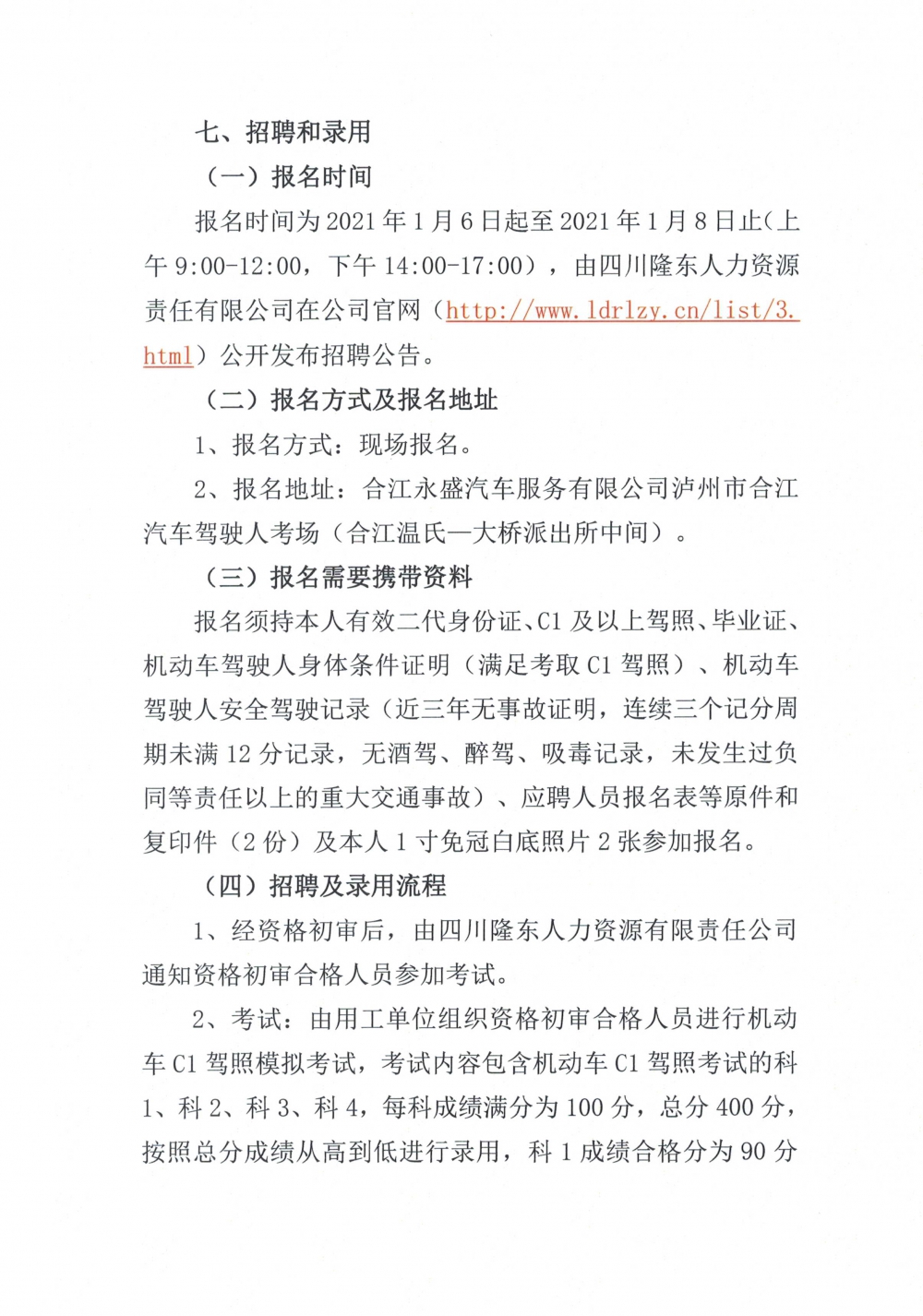 關于招聘派遣至合江永盛汽車服務有限公司社會輔助考試員的 (公 告)